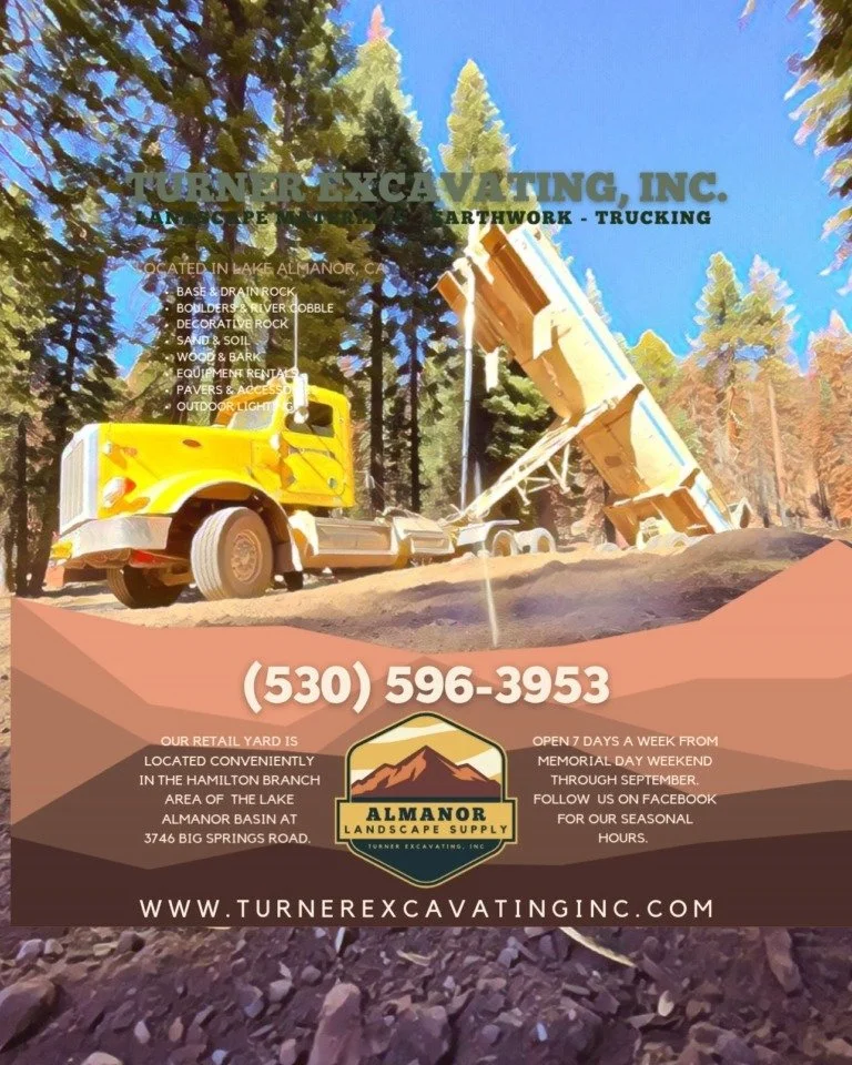 Turner Excavating, Inc is a local excavation-construction company and so much more! We also operate 3 sand and gravel quarries in the Plumas and Lassen counties as well as a landscape materials supply yard located in Lake Almanor, California.