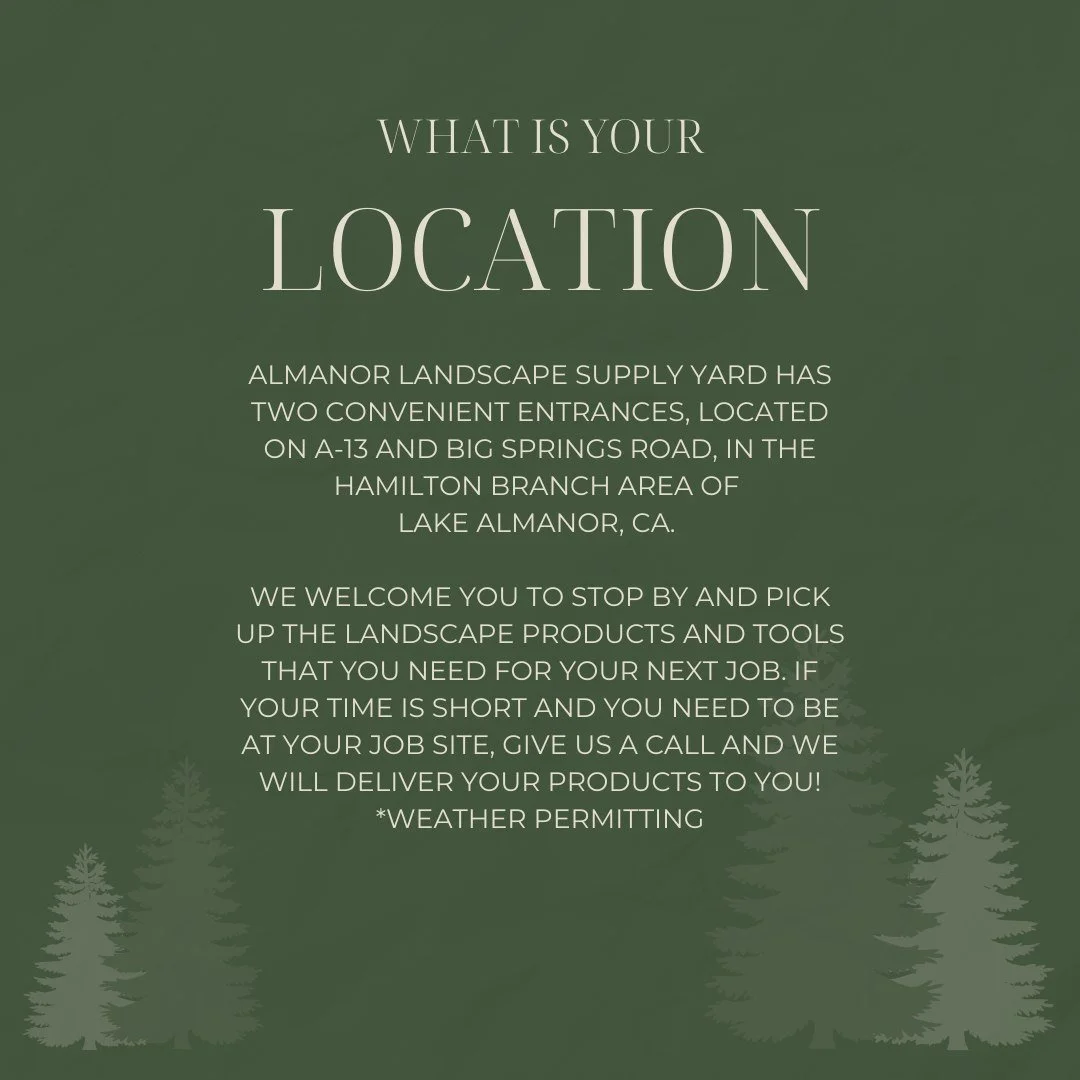 Almanor Landscape Supply Hours: MON-FRI 7am-4pm, SATURDAY 9m-3pm
